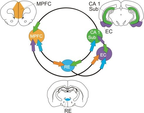 Ο πυρήνας επανασύνδεσης συνδέει τον προμετωπιαίο φλοιό και τον ιππόκαμπο και εμπλέκεται στη μνήμη, το συναίσθημα και τη λήψη αποφάσεων. Η απορρύθμιση αυτής της περιοχής έχει εμπλακεί σε παρορμητικότητα και συμπεριφορές που σχετίζονται με το άγχος.